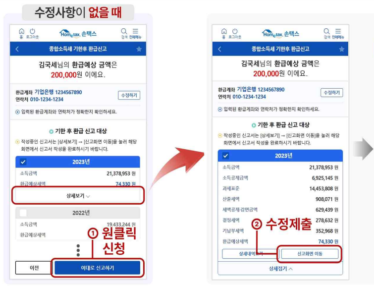 환급금액 확인 후 ‘이대로 신고하기’ 클릭