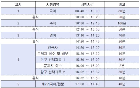 ➡️ 시험 영역 : 국어, 수학, 영어, 탐구(사회/과학), 제2회국어/한국사