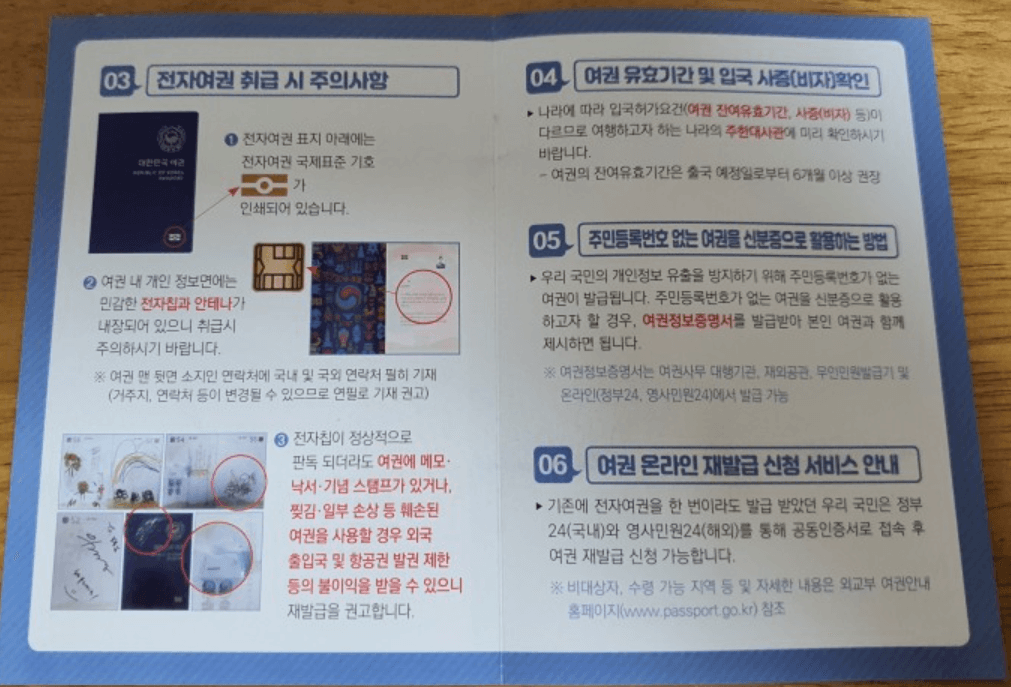 ▶ 국내에서 여권 전자칩이 고장난 경우, 가까운 여권 발급 기관(구청, 시청 등)에 연락하여 상황을 설명해야 합니다.
