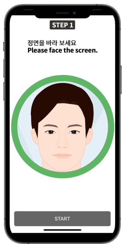 6 얼굴 인증 > 여권 전자칩 인식이 완료되면 얼굴 인증을 진행합니다. 2초간 눈을 감고 얼굴 스캔을 합니다.