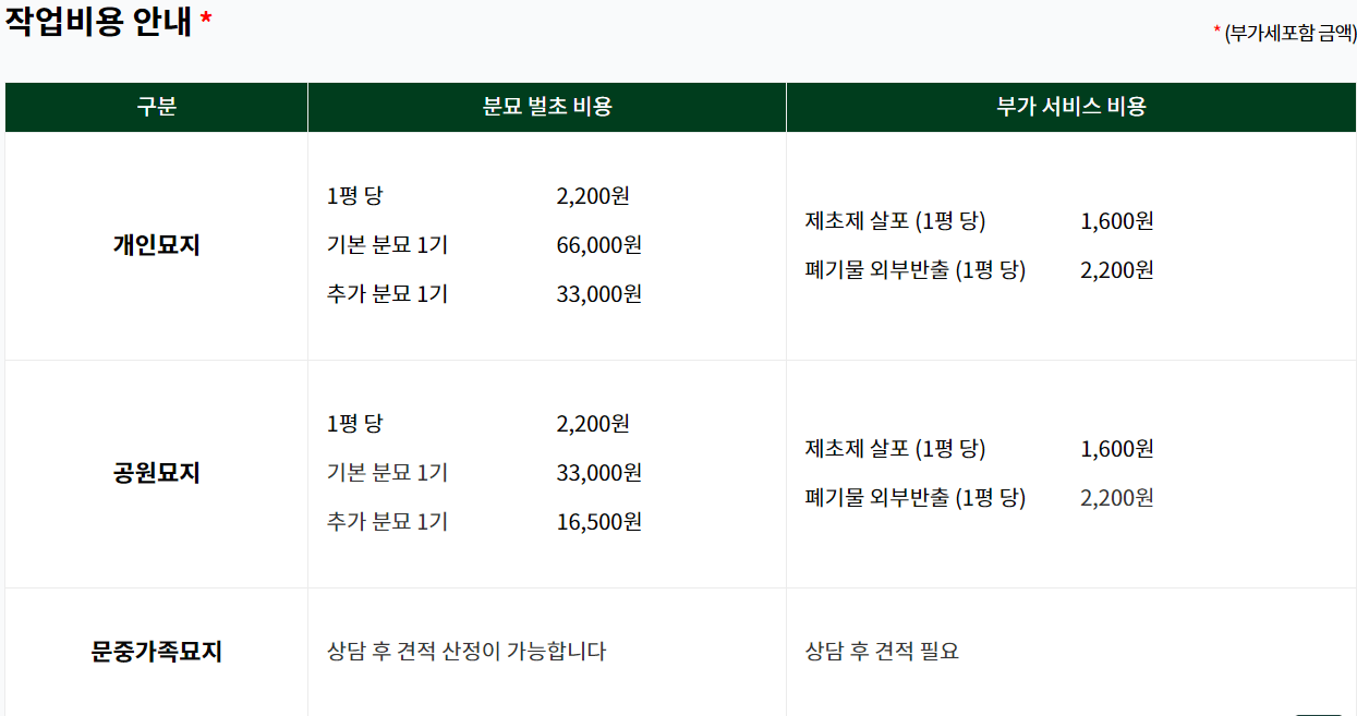 - 1 기당 벌초 1회 기준 단가는 각 지역별 조합마다 상이합니다.
