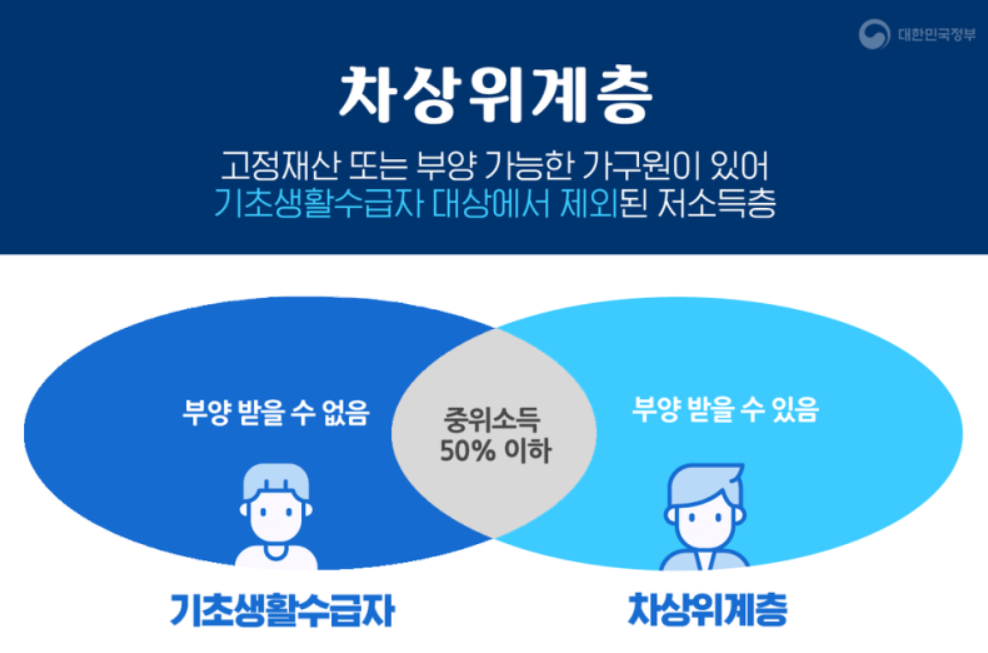 차상위계층은 기초생활 수급자 바로 위 계층을 말합니다.기초생활 수급자 보다 생활이 엄청 어려운건 아니지만 소득인정액이 일정 기준 이하인 계층을 이라고 생각하시면 됩니다. 기초생활 수급자로 혜택을 받다가 소득이 증가로 자격이 사라지면 바로 차상위계층을 이용 할 수 있는 지원 제도 입니다.