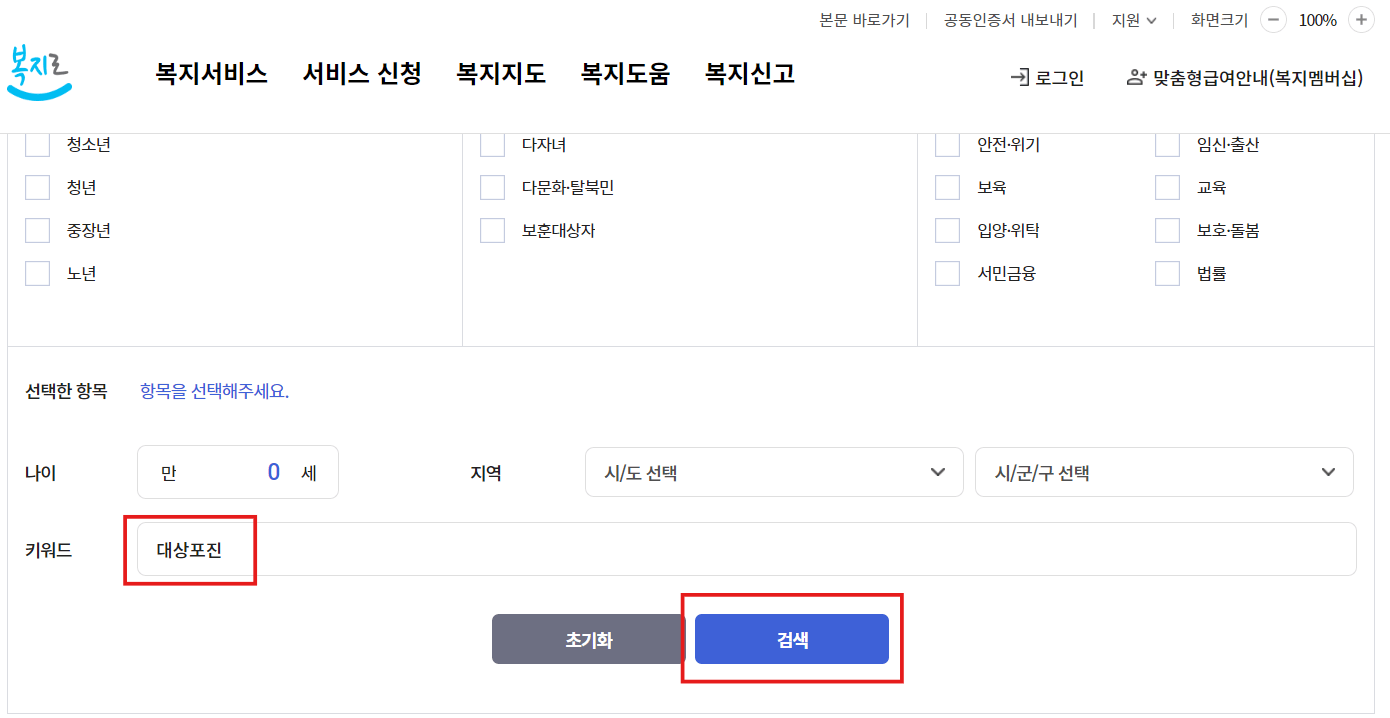 (지역항목에 자신이 속해있는 지역을 선택하면 빠르게 확인이 가능합니다.)
