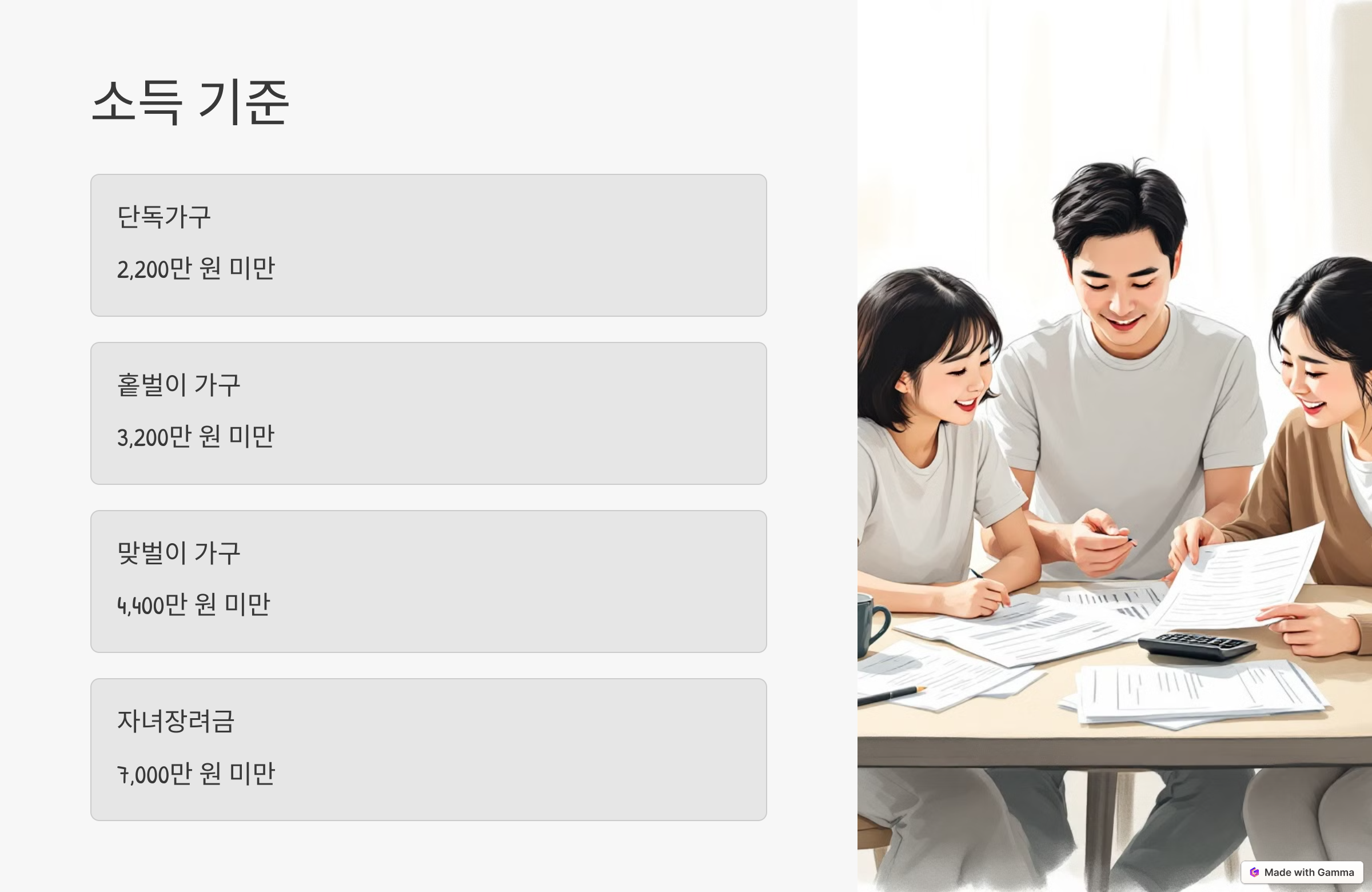 | 맞벌이 가구 | 4,400만 원 미만 | - |