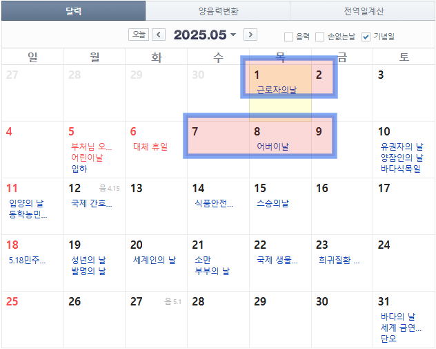 | 적용 대상 | 설날, 추석, 어린이날, 삼일절, 광복절, 개천절, 한글날 |