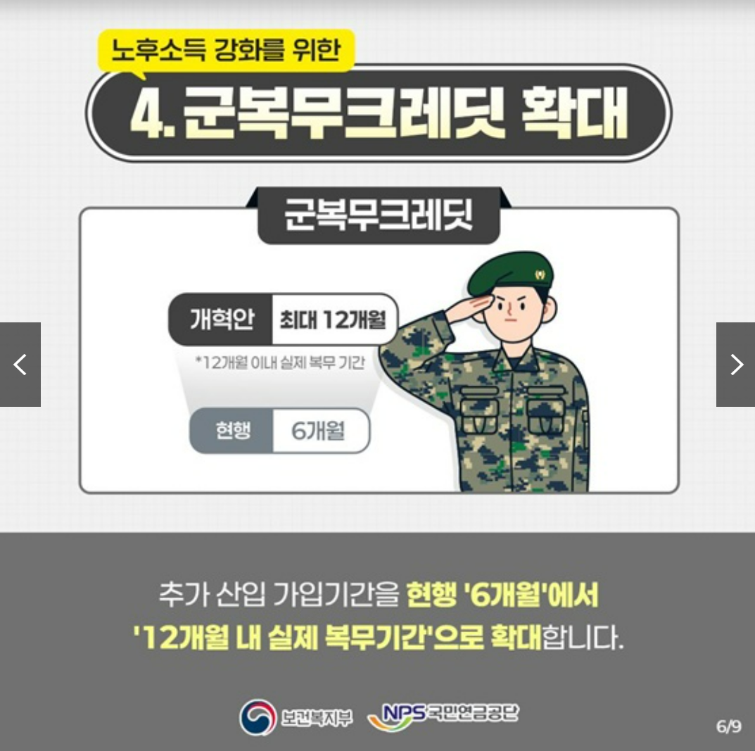 | 군복무 크레딧 | 6개월 | 12개월 |