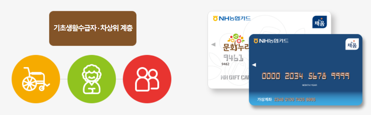 문화누리카드는 기초생활수급자와 차상위계층을 대상으로 문화예술, 국내여행, 체육활동을 지원하는 카드입니다. 이 카드로 공연 관람부터 영화, 전시, 국내여행, 스포츠 관람까지 다양한 문화생활을 즐길 수 있습니다.