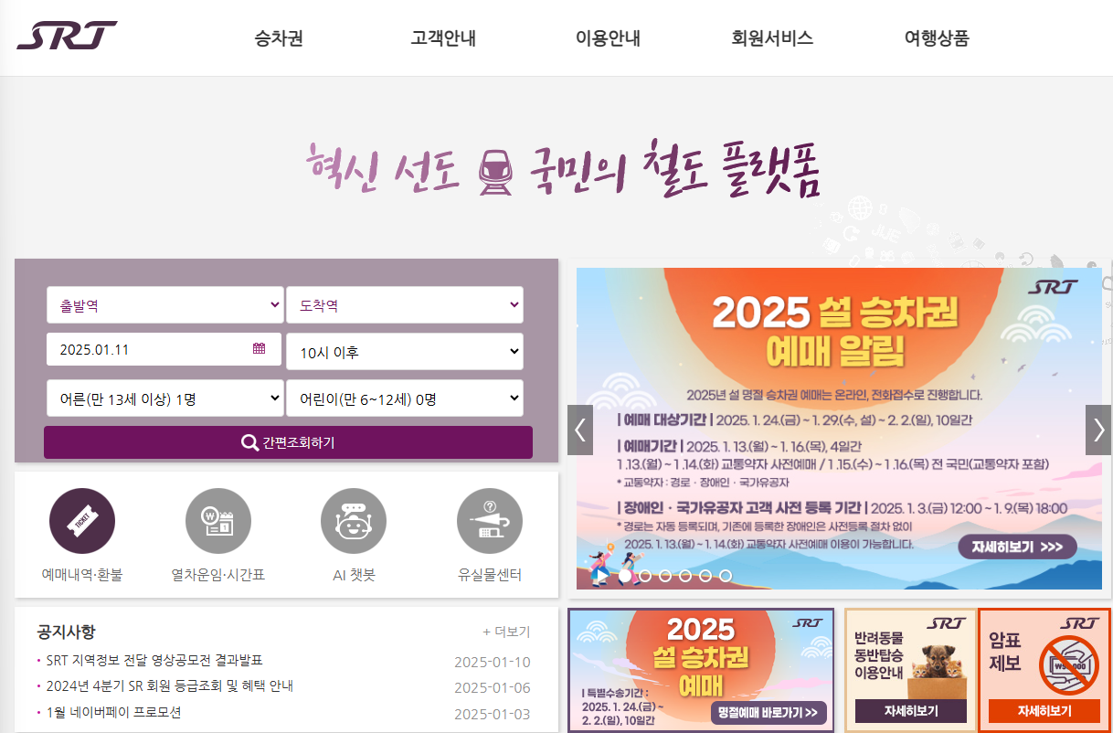2025년 설 명절을 맞아 많은 분들이 고향 방문이나 여행을 계획하고 계실 텐데요. 빠르게 매진될 수 있으니 사전 예매 정보를 잘 숙지하는 것이 필요합니다. SRT 승차권 예매에 대한 안내를 자세히 정리해드리겠습니다. 예매 일정, 방법, 위약금 정책 등 중요한 정보를 한눈에 확인할 수 있도록 준비했으니, 편리하게 예매하시고 즐거운 명절 보내시길 바랍니다.