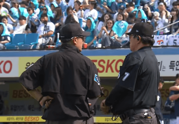 NC 강인권 감독은 심판진에게 항의했고, 심판진은 논의를 진행했는데 이때 중계방송을 통해 심판진의 대화가 공개되었습니다. 이들은 ABS의 오류를 은폐하려는 듯한 발언을 나누었습니다.